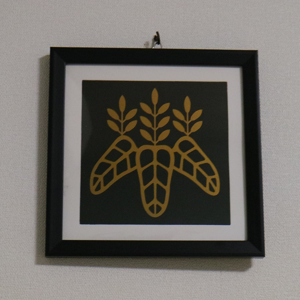 武将家紋額 太閤桐 豊臣家(豊臣秀吉) 黒背景xつや消し金の紋